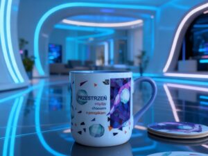 Duży ceramiczny kubek 330 ml z autorską grafiką i tekstem. Biały, nakrapiany, z naturalnym charakterem.