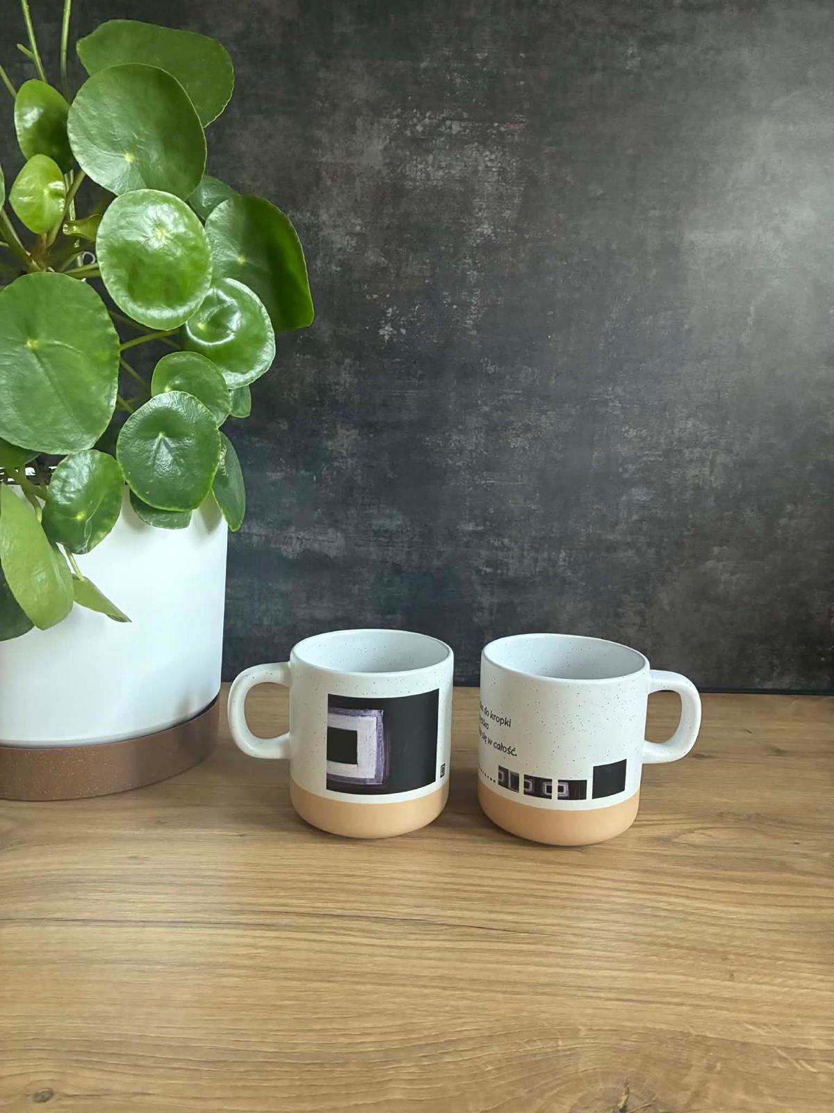 Motyw Kwadraty jest jak miejski szkic i uporządkowany chaos w jednym — geometryczny, wyrazisty, świetnie gra z jasnymi wnętrzami, biurkiem w pracy i Twoją ulubioną półką w kuchni. To kubek, który wygląda dobrze „solo”, ale jeszcze lepiej w duecie: z książką, playlistą i momentem tylko dla siebie.